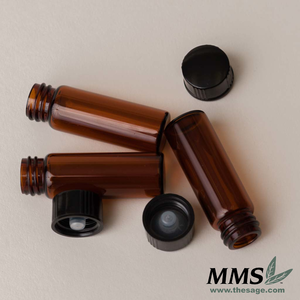 All of our glass drams have a black cap with a polycone liner. This liner is great for essential oils, potpourri refreshers and more. The glass is available in clear or amber.
